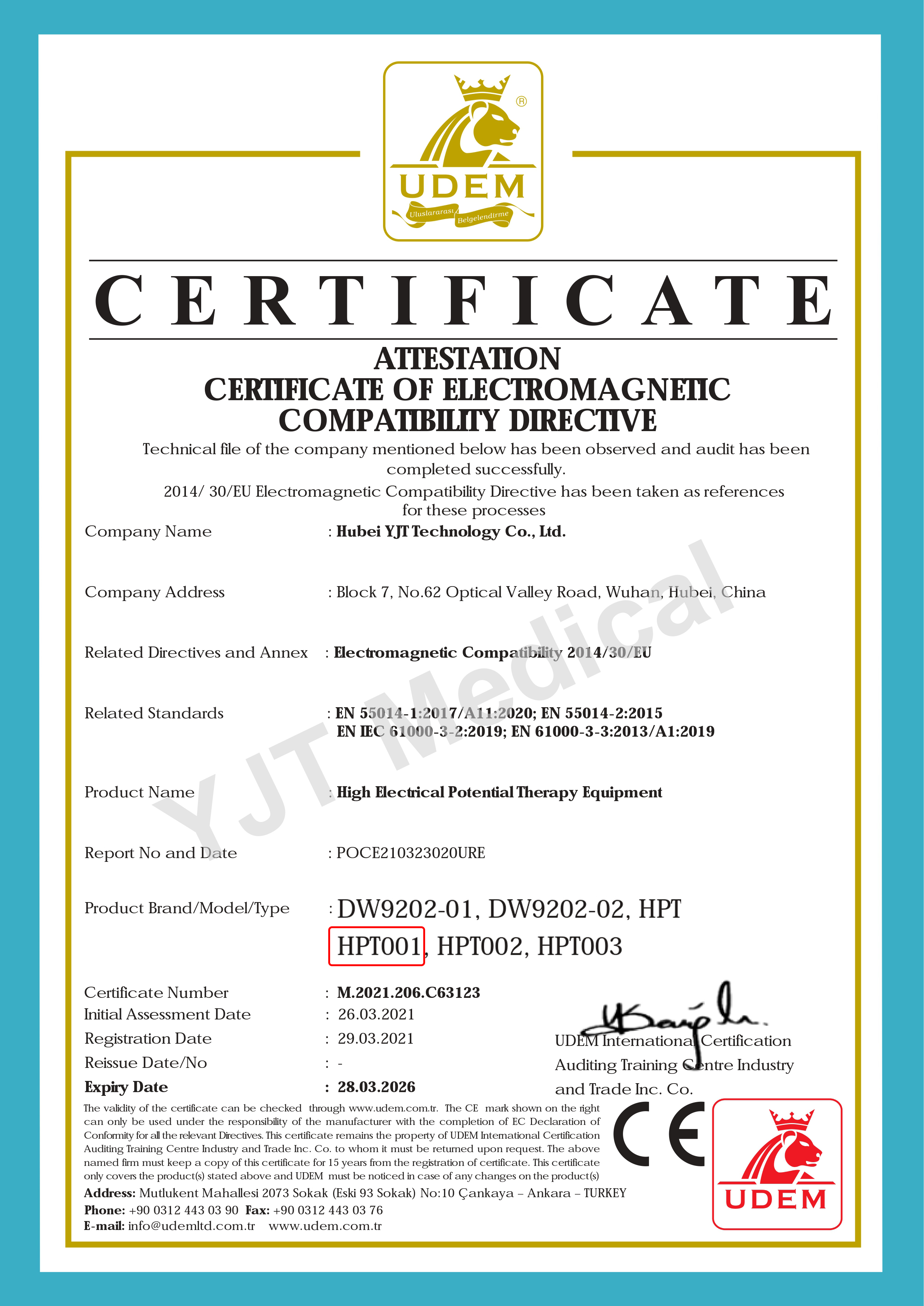 Our products have passed CE certification, and the YJT laser treatment instruments series comply with
